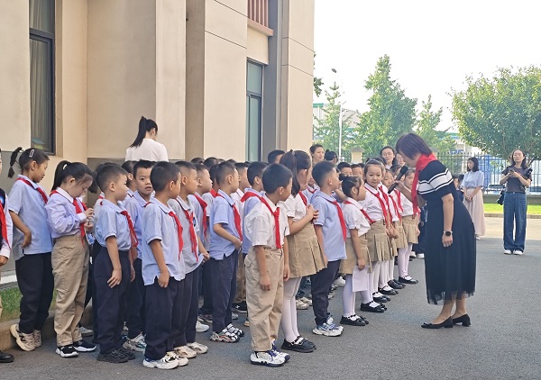 启动仪式现场,气氛热烈而欢快。杨凌高新第五小学六年级的学生们为出席活动的领导、志愿者佩戴红领巾,这一充满敬意的举动拉开了活动的序幕。那鲜艳的红领巾在阳光的照耀下格外醒目,仿佛在诉说着过去的辉煌与未来的希望。