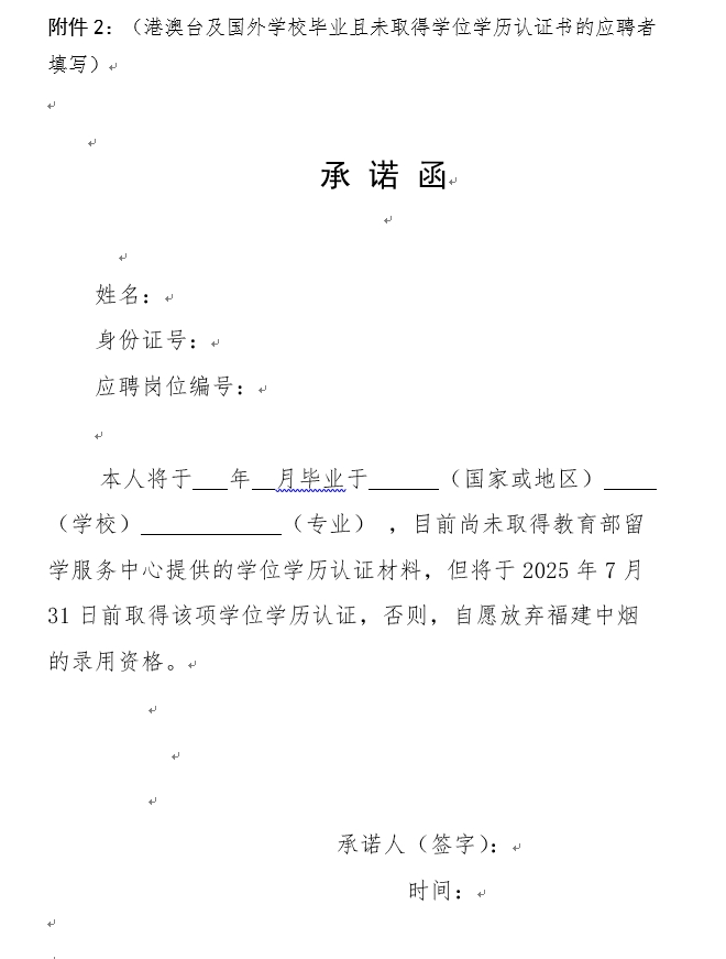 2. 承诺函(港澳台及国外学校毕业且未取得学位学历认证书的应聘者填写)