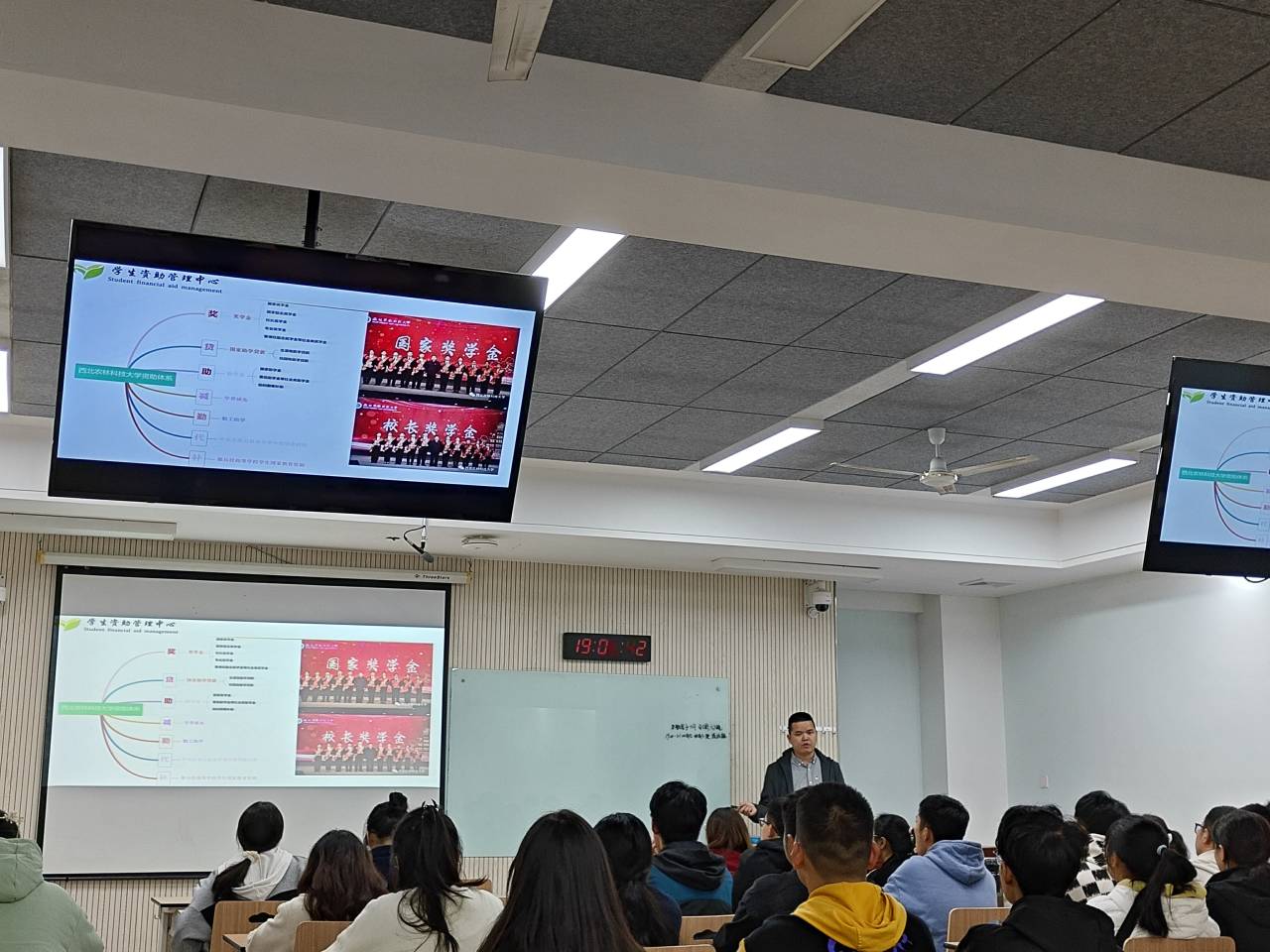 帕尔哈提·买明老师从奖助学金政策、国家助学贷款流程、学费减免、困难补助、勤工助学等方面进行了全面的讲解,并对同学们提出的问题进行详细的解答。让同学们充分了解到资助政策,“从心开始,以心化行”,在日常生活中不断规范行为、丰富品德内涵、加强道德修养、提升学习能力;并且向大家传递乐观生活,积极向上,常怀感恩,无私奉献,坚定目标,全力以赴的正能量。