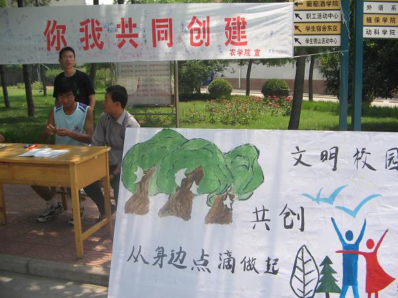 自我校开展创建文明校园以来,365WM完美体育全院高度重视,学院党政领导多次召集学院各部门会议,全面部署安排创建省级“文明校园”的各项工作。学院团工委学生会也开展了各项教育活动,将该项工作逐步推向深入。先后举行了以“让文明之花在校园绽放”为主题的大型宣传活动、校园图书飘飘、“美丽西农、爱心呵护”为主题“五个文明”大型实践活动、“树诚信之风”大型活动之––诚信签到宣誓、开展了诸如诚信座谈会、主题辩论赛、主题征文、诚信签到、“校园十大不文明行为”评选、校园节水行动调查、“诚信柿子”、诚信考试大型签名活动,旨在使“五个文明”深入人心,树立良好的学风校风,从而推进我校省级“文明校园”创建活动的顺利开展。这些活动对于加强学生的诚实守信意识,弘扬当代大学生的诚实守信精神,树立正确的社会主义人生观具有重大意义,也为我校建设文明校园打下了重要基础,有力的配合了我校文明校园的创建工作。