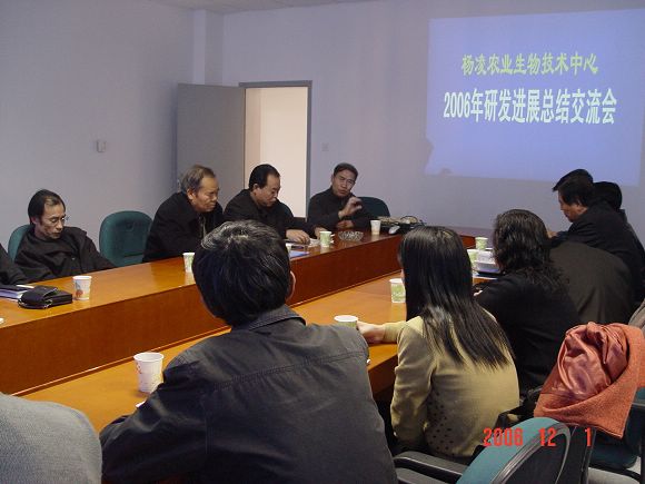 12月1日下午,“杨凌农业生物技术育种中心2006年度研发进展总结交流会”在国家小麦改良中心杨陵分中心会议室召开。中心主任张改生教授就召开杨凌农业生物技术育种中心2006年度总结交流会的目的与意义做了简要的说明,会议由中心副主任王新中教授主持。张改生教授、王辉教授、谢惠民教授、姚雅琴教授等项目组主持20余人就各自课题的研发进展进行了总结交流。