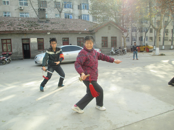 与老人一起锻炼
