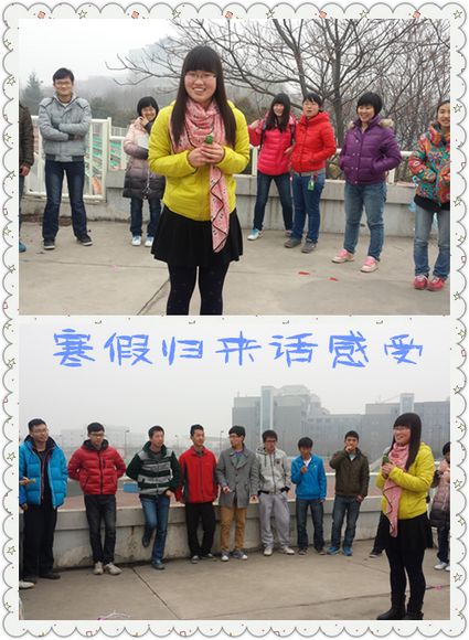 在新学年开始之际,为了使同学们总结寒假生活,更好的规划展望新学期,我院组织2013级各支部举行了以“寒假归来话感受”为主题的团组织生活。