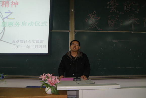3月4日上午,我院于8T07教室举行了“传承雷锋精神之社区志愿服务”启动仪式。365WM完美体育团工委书记梁子龙、辅导员王娜,林杰、西农家属区的退休教职工代表、学生会主要学生干部及我院80余名志愿者参加了本次启动仪式。
