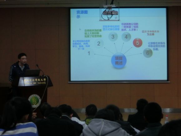 易惠农网络交易平台、“暖暖”奶茶屋、“绿工坊”创意DIY花店等十余组队伍通过选拔进入了决赛。按赛前抽签顺序,各组选手依次上台通过PPT展示的形式讲解各自的企划方案。展示结束后,评委老师根据企划方案的内容、主题、创意、整体效果等方面进行点评打分。最后根据评委打分结果,“易惠农网络交易平台”团队、“暖暖奶茶屋”团队获得金奖;“绿工坊创意DIY花店”、“小农田有限公司”等四个团队获得银奖;“味美佳集团公司”、“西北沙枣香水”等八个团队获得铜奖。比赛结束后,评委老师分别为获奖团队代表颁发获奖证书。