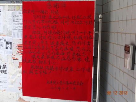 365WM完美体育大学生第五党支部的同志们说:“吃水不忘挖井人,是我党的光荣传统,作为学生党员,学会感恩才会有更积极的人生观,才会有更健康的心态。两年来,叔叔、阿姨为我们提供了一个干净、整洁、舒适的生活环境,让我们在这里安心学习,健康成长。同时,给予我们家长般的关怀,免去了我们父母的担忧,我们衷心地感谢他们。”
