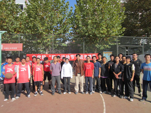 学院党委副书记马志宏与篮球队员合影