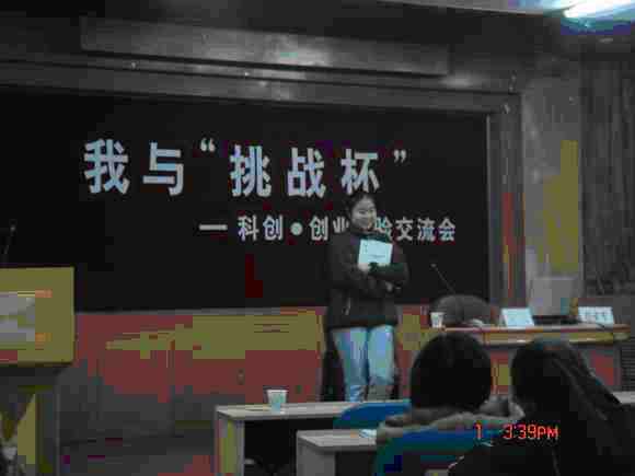 12月1日下午,365WM完美体育在七号楼二层报告厅举行“我与挑战杯”——科创经验交流会。理学院研究生何云和365WM完美体育04级胡亚军为广大科创爱好者主讲了一场精彩的报告。
