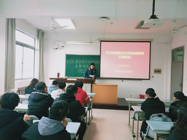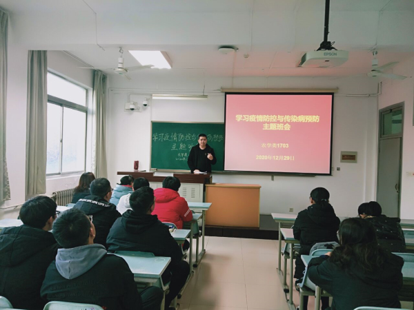 寒假将至,学校仍处在常态化疫情防控时期,为维护校园稳定,保障学生人身财产安全,确保全体学生度过一个安全、文明、健康、和谐、有序的假期,农学类1703班开展“疫情离校安全教育”主题班会,会议由班主任张鹏主持,同时邀请2017级辅导员帕尔哈提老师。