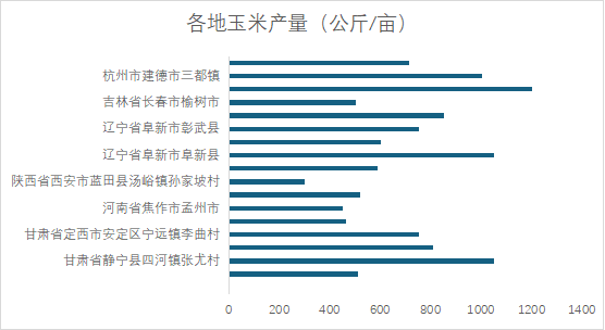 注:受收集数据数量所限,图示产量不代表该地区所有玉米的平均亩产量